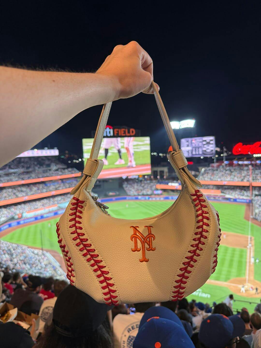 MLB New York Mets Hobo Bag With Baseball Seams
